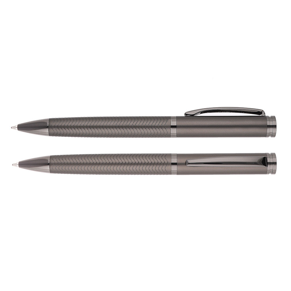 Luxusné kovové guličkové pero Calliope s modrou náplňou v rôznych farebných prevedeniach.