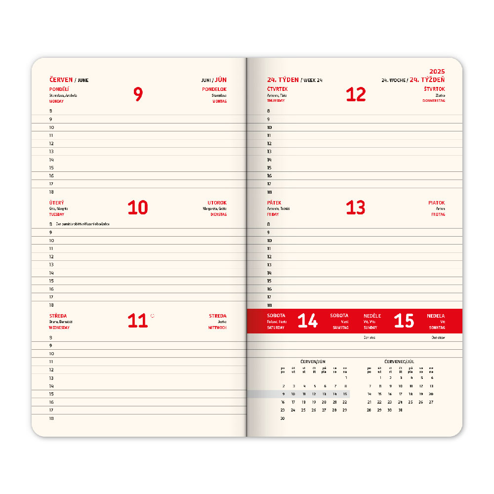 Kalendárium: týždenné 4jazyčné (CZ, SK, GB, DE)