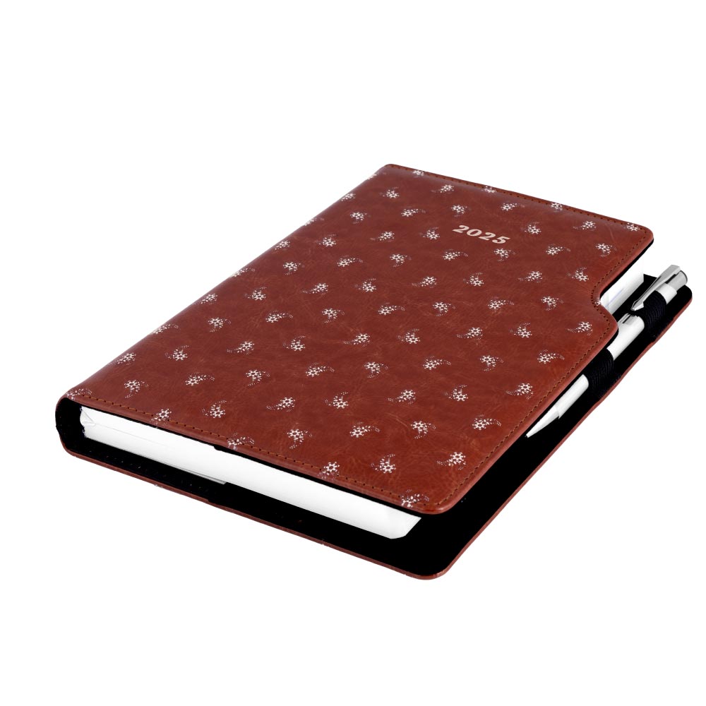 Diár DESIGN denný A5 2025 slovenský - hnedá - biely kvet