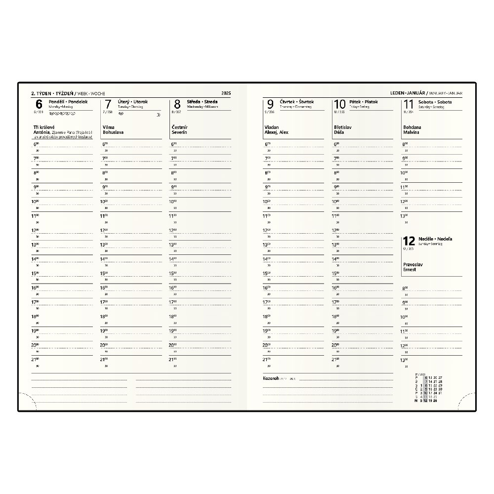 ročný plánovací kalendár CZ/SK 2025, miesto na poznámky.