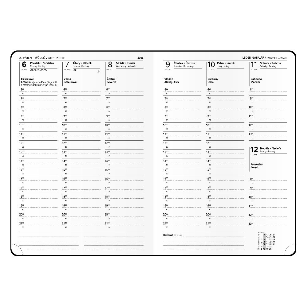ročný plánovací kalendár CZ/SK 2025, miesto na poznámky.