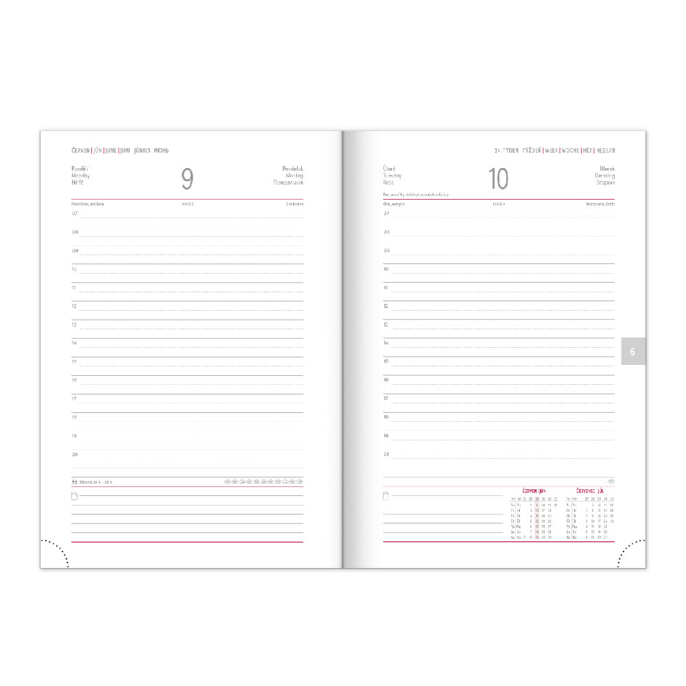 Diár obsahuje: miesto pre osobné údaje, mesač