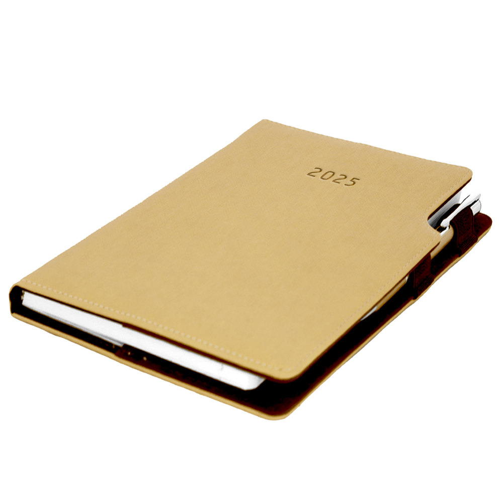 Diár GEP s perom denný A5 2025 slovenský - béžová/hnedé vnútro