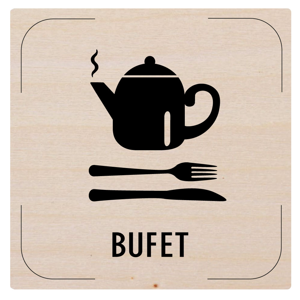Ceduľka na dvere - Bufet - piktogram, drevená tabuľka, 80 x 80 mm