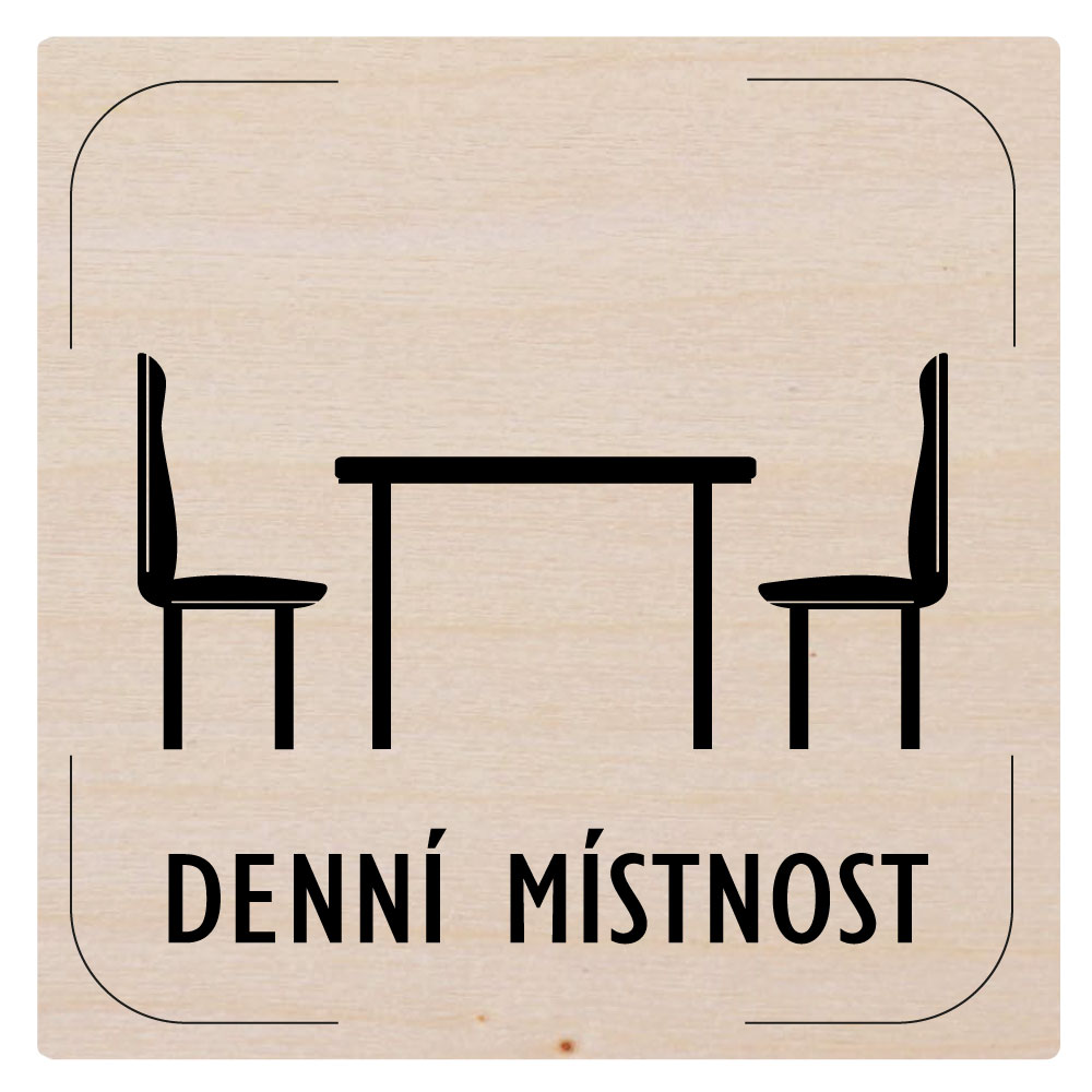 Ceduľka na dvere - Denná miestnosť - piktogram, drevená tabuľka, 80 x 80 mm