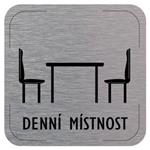 Ceduľka na dvere - Denná miestnosť - piktogram, hliníková tabuľka, 80 x 80 mm