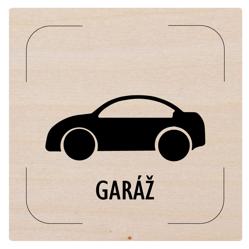 Ceduľka na dvere - Garáž - piktogram, drevená tabuľka, 80 x 80 mm