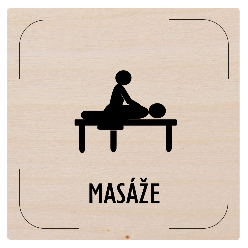 Ceduľka na dvere - Masáže - piktogram, drevená tabuľka, 80 x 80 mm