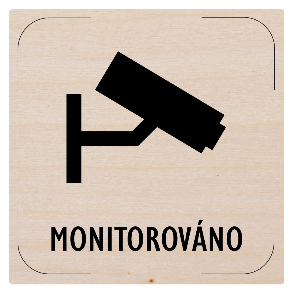 Ceduľka na dvere - Monitorováno - piktogram, drevená tabuľka, 80 x 80 mm