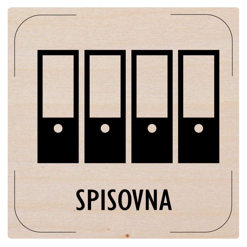 Ceduľka na dvere - Spisovňa - piktogram, drevená tabuľka, 80 x 80 mm