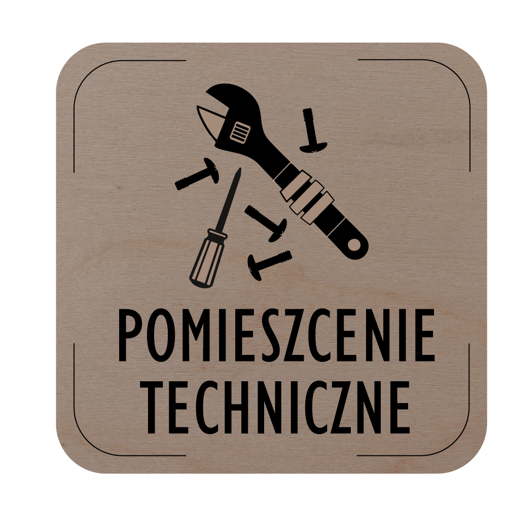 Ceduľka na dvere - Technická miestnosť - piktogram, drevená tabuľka, 80 x 80 mm