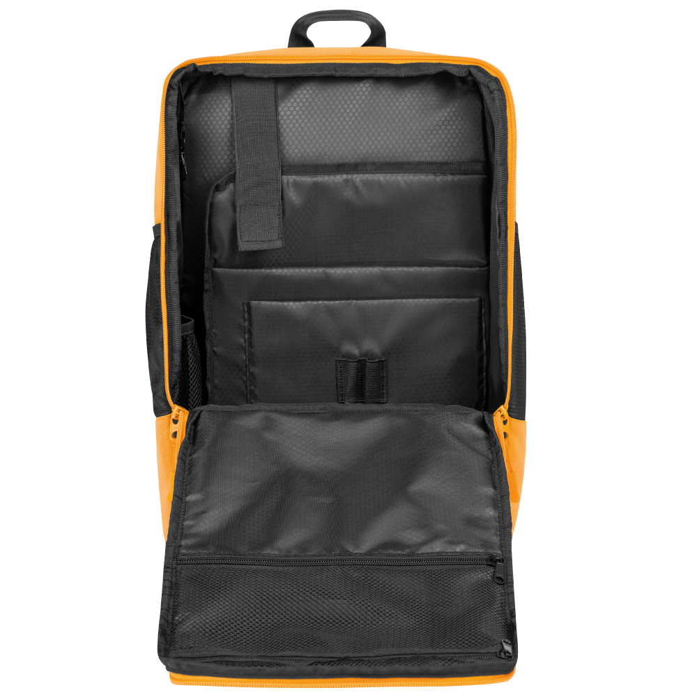 • Ideálny na cesty ako príručná batožina do lietadla. Ďalšou výhodou je chrbtový popruh, ktorý slúží k fixácii batohu na držiakoch kufra.