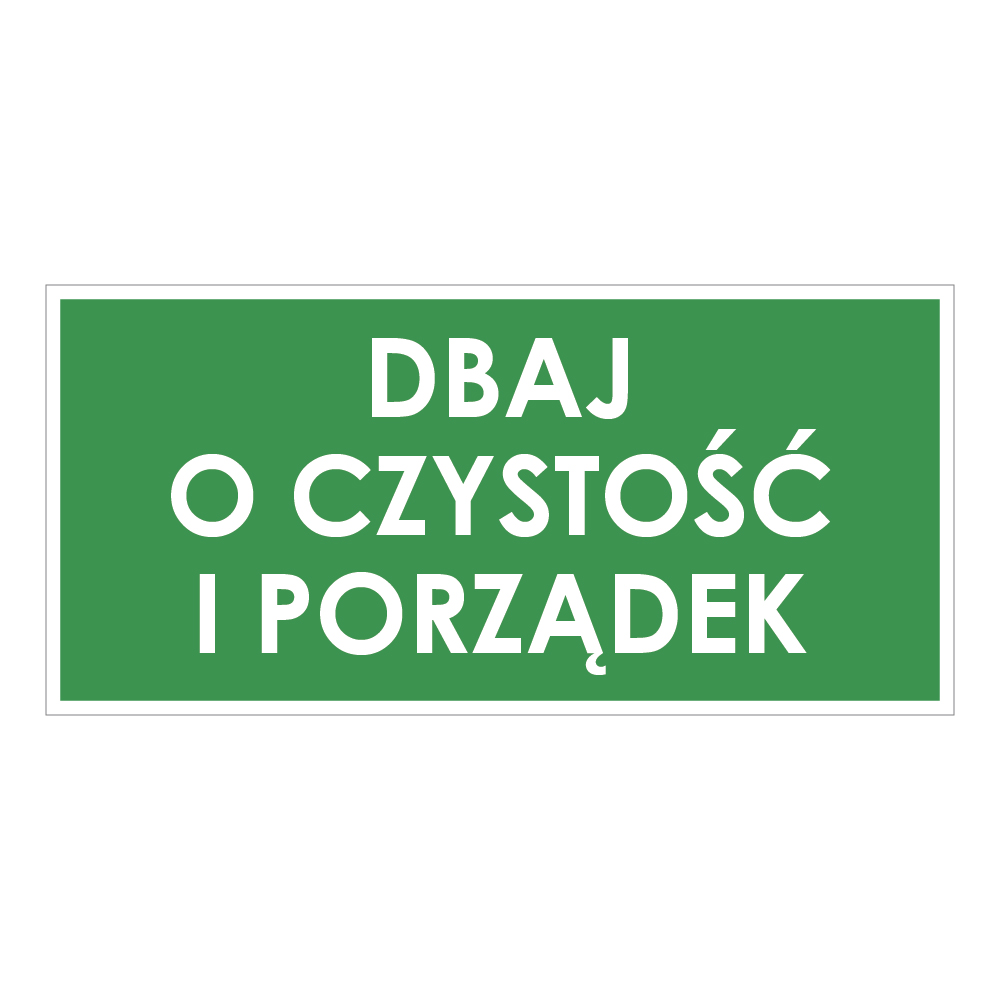 DBAJ O CZYSTOŚĆ I PORZĄDEK, zielony - płyta PVC 2 mm 190x90 mm