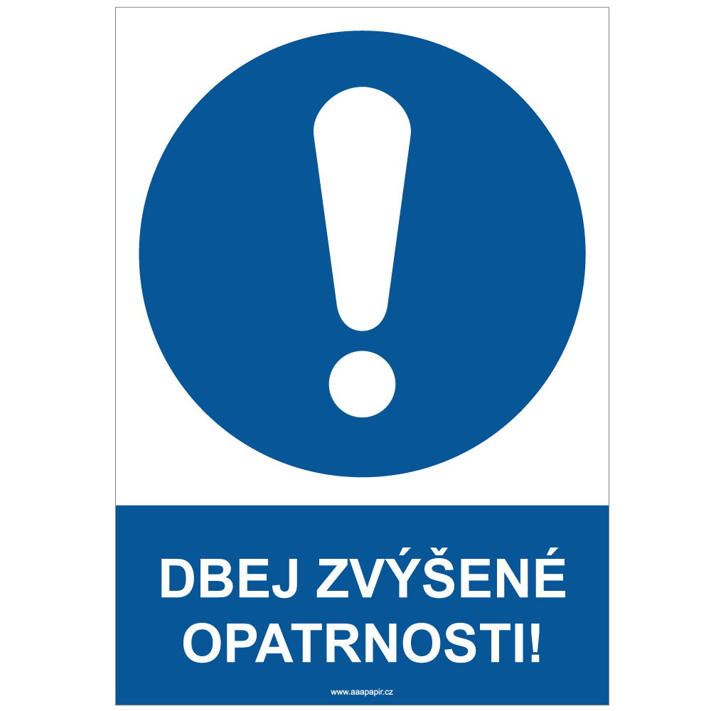 DBEJ ZVÝŠENÉ OPATRNOSTI! - bezpečnostní tabulka, plast A4, 0,5 mm