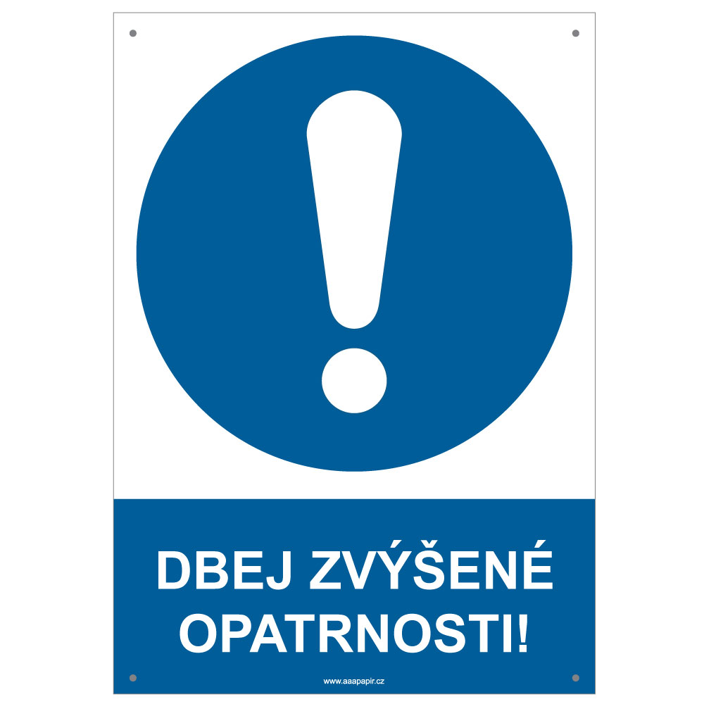 DBEJ ZVÝŠENÉ OPATRNOSTI! - bezpečnostní tabulka s dírkami, plast A4, 2 mm