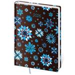 Formát: A5 Rozmer bloku: 143 x 205 mm Blok vkladaný do dosiek diára Rozsah: 354 stran Väzba: šitá V8 (tkaná nit) Kalendárium: denné slovenské menné Jazykové mutácie: SK, CZ, EN, DE, RU Farba bloku: biela Farba písma: modrá a červená Poťahový mat