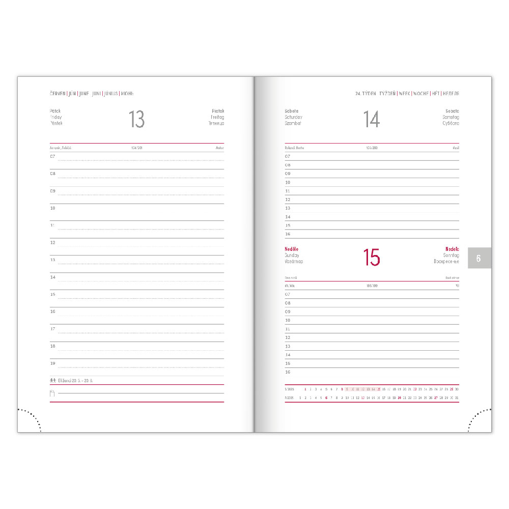 Diár obsahuje: miesto pre osobné údaje,
