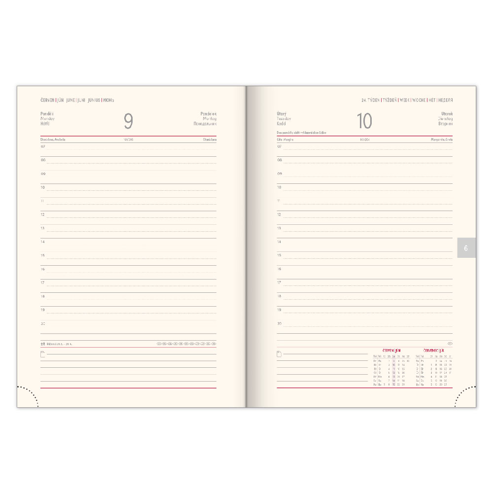 Diár obsahuje: miesto pre osobné údaje, mesačné pláno