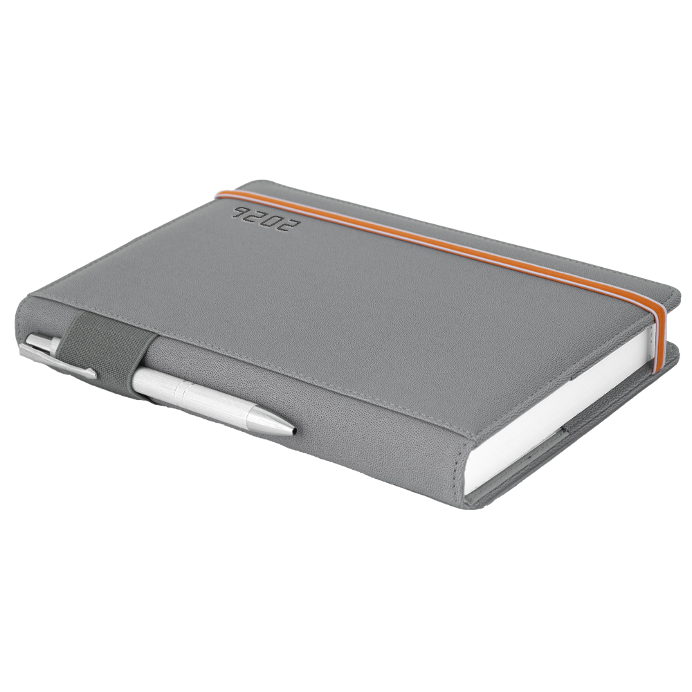 Diár AMOS denný A5 2026 český - sivá/oranžová gumička