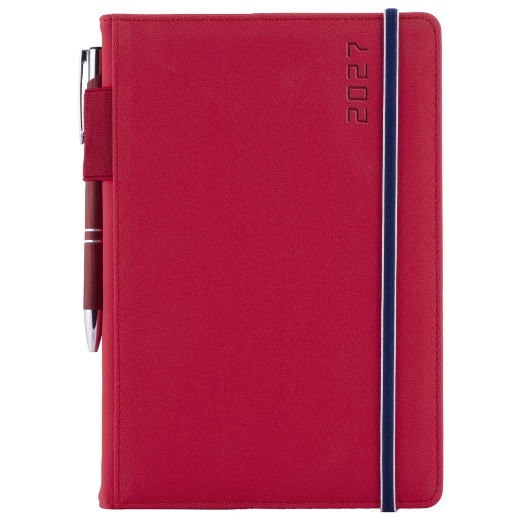 Diár AMOS denný A5 2027 polský - červená/modrá gumička