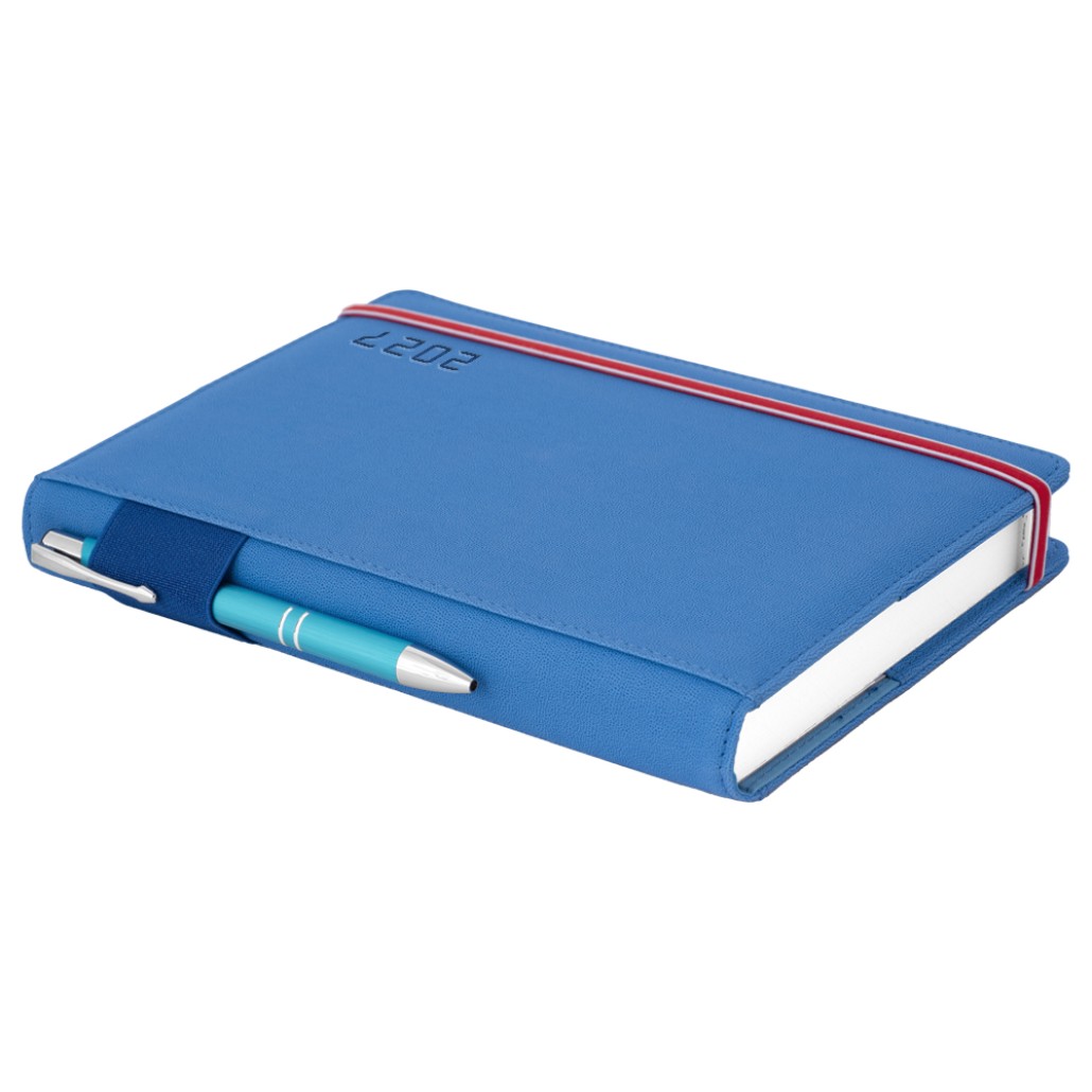 Diár AMOS denný A5 2027 polský - modrá/červená gumička