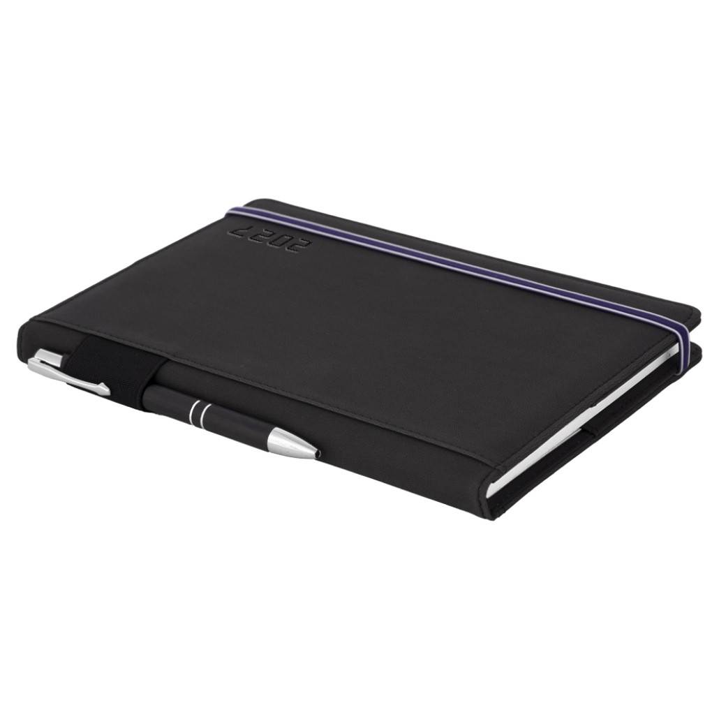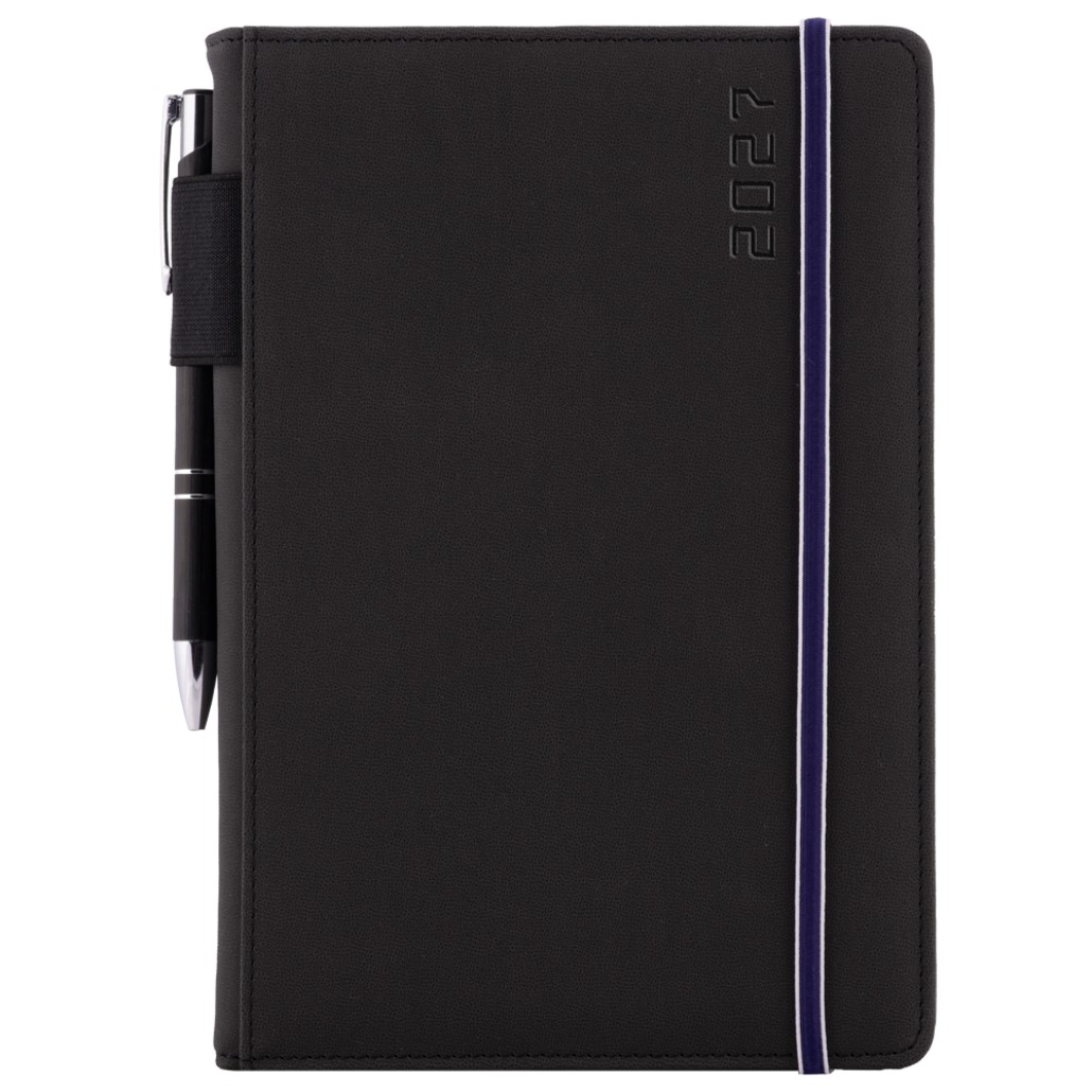 Diár AMOS týždenný A5 2027 polský - čierna/modrá gumička