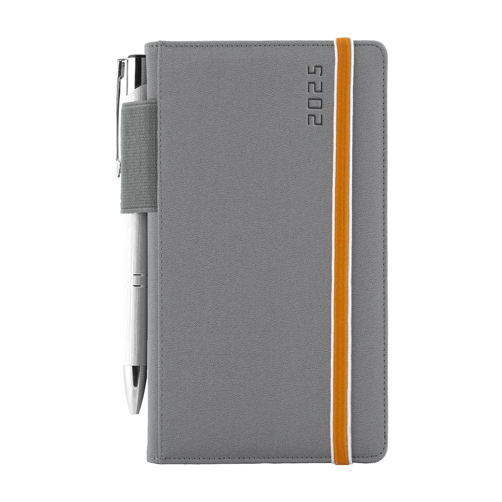 Diár AMOS týždenný vreckový 2025 polský - sivá/oranžová gumička