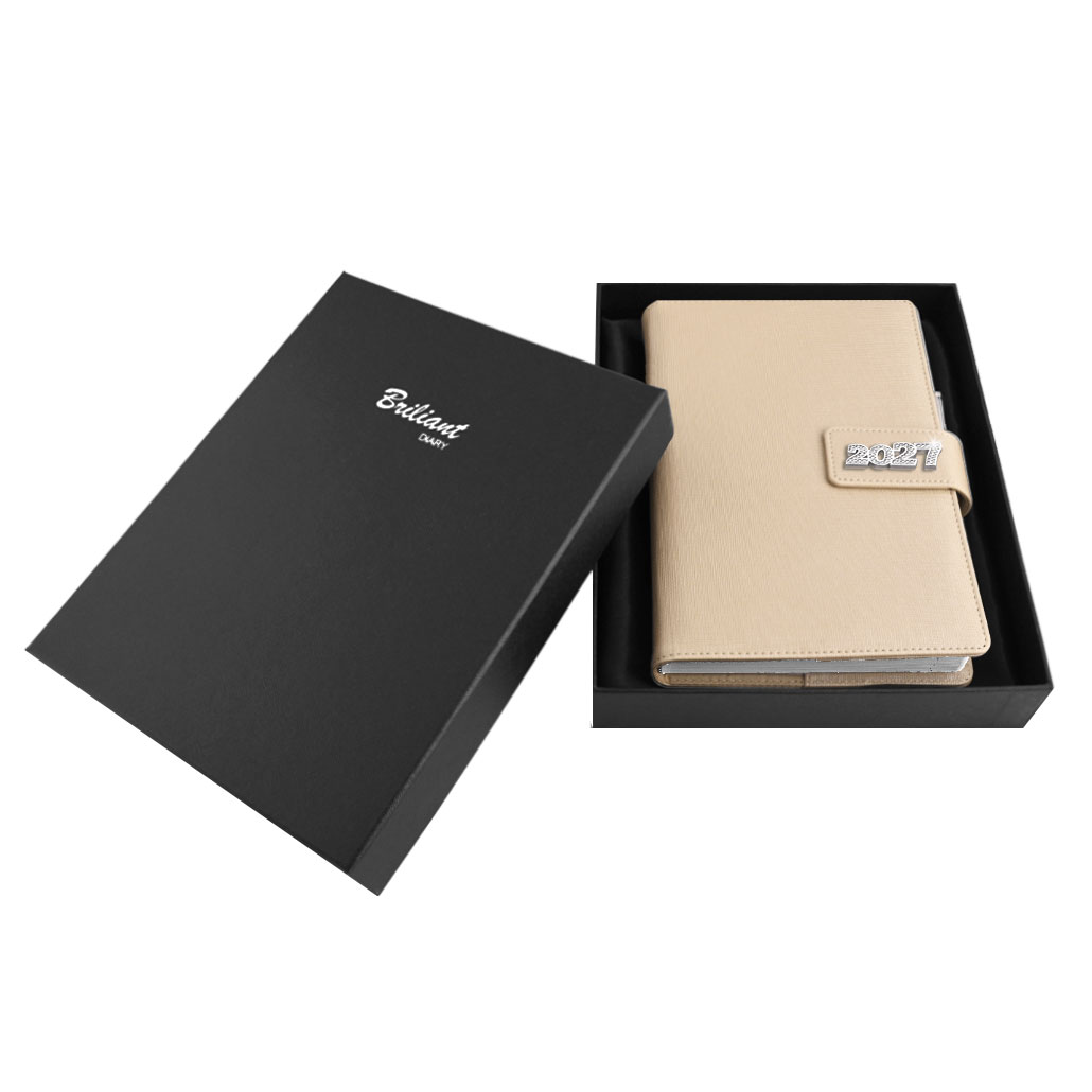 Diár je balený v darčekovej krabičke vystlané saténom.