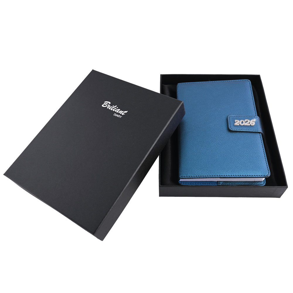 Diár je balený v darčekovej krabičke vystlané saténom.
