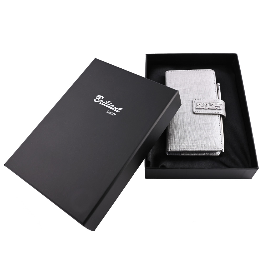 Diár je balený v darčekovej krabičke vystlané saténom.