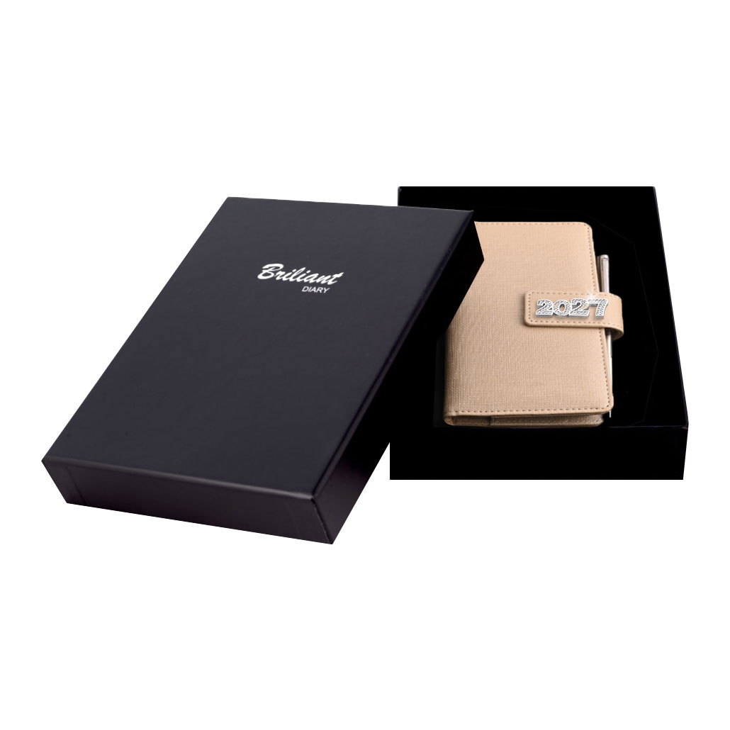 Diár je balený v darčekovej krabičke vystlané saténom.