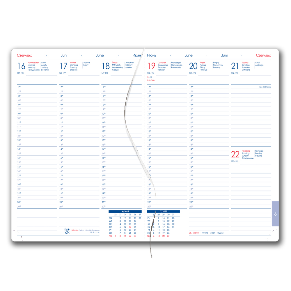 Diár obsahuje: krúhle odtrhávacie rožky, bielu záložku a pero