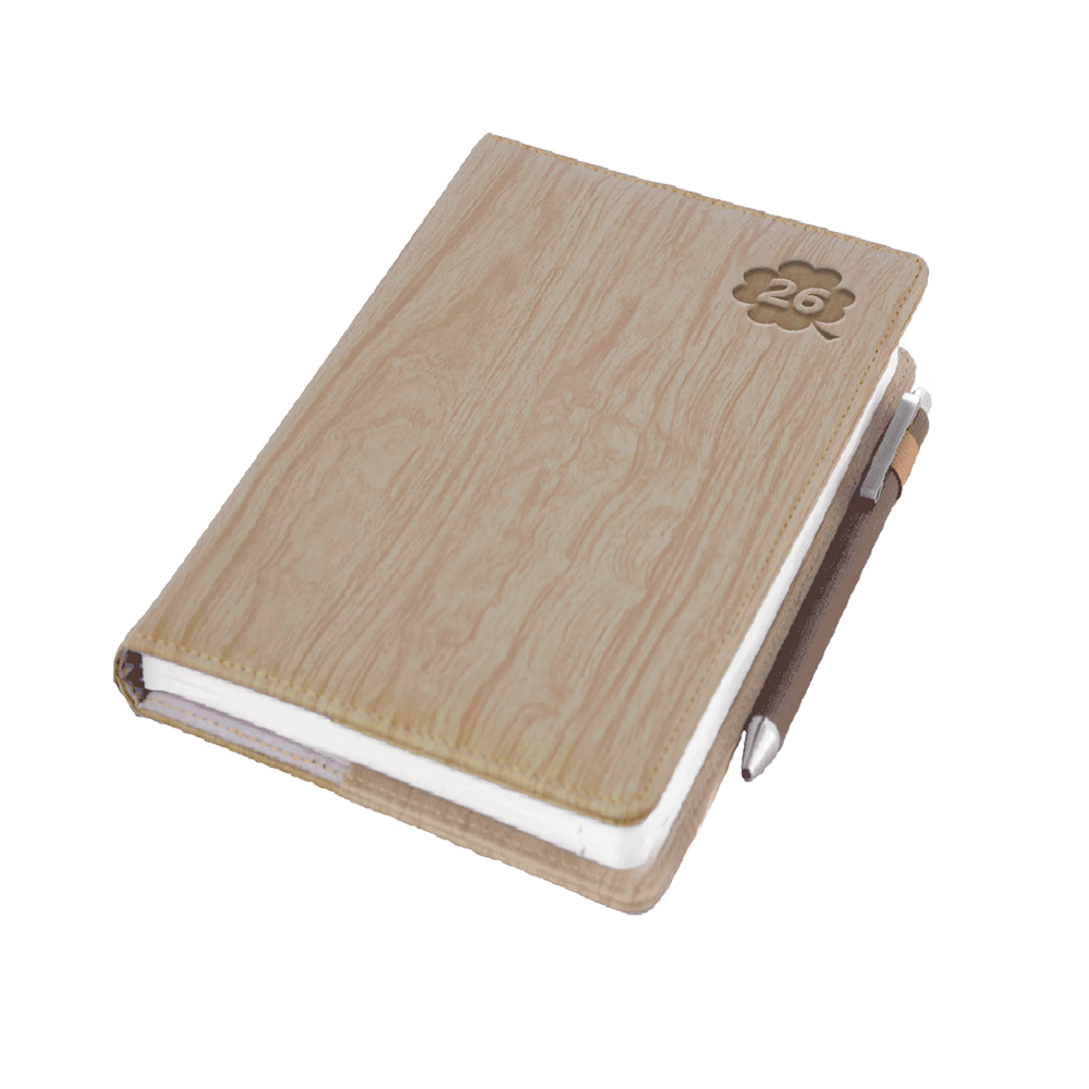 Diár obsahuje: okrúhle odtrhávacie rožky, bielu záložku a pero