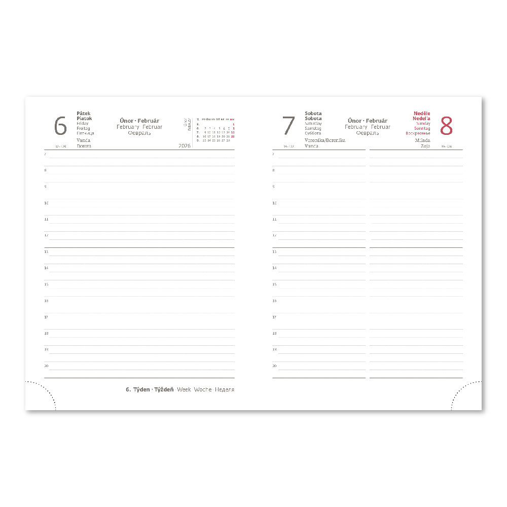 Diár denný B6 2026 Vario - Pink s gumičkou