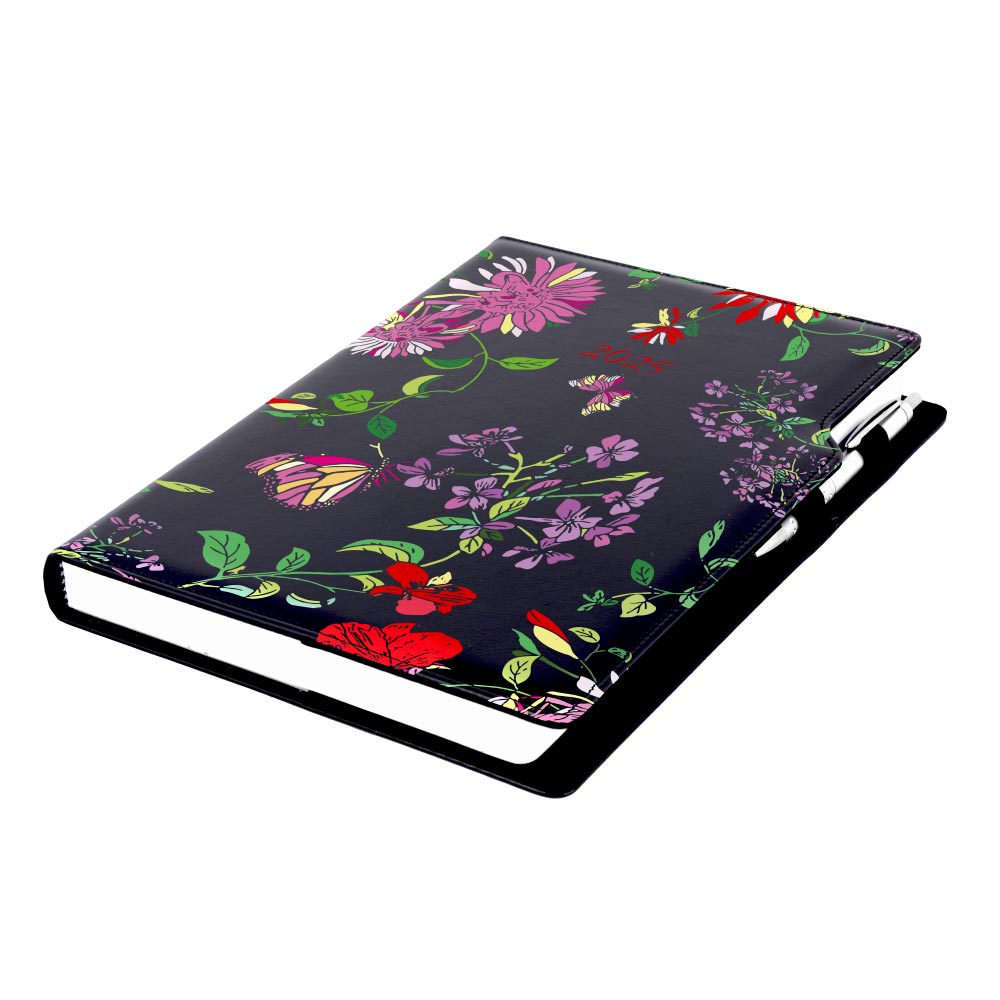 Diár DESIGN denný A4 2025 poľský - čierná - kvety
