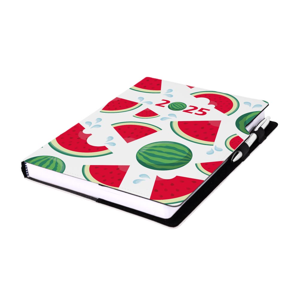 Diár obsahuje: okrúhle odtrhávcie rožky, bielu záložku a pero