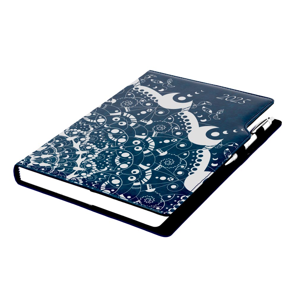 Diár DESIGN denný A4 2025 poľský - modrý - ornament