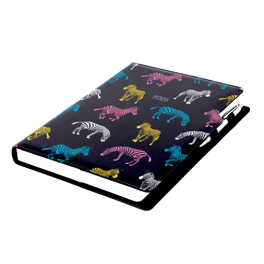 Diár DESIGN denný A4 2026 český - čierna - zebra