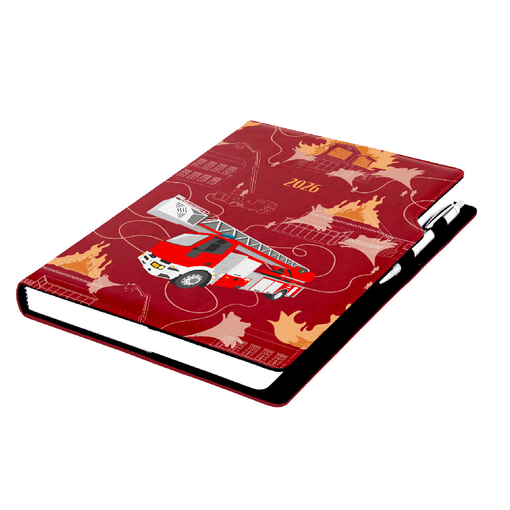 Diár DESIGN denný A4 2026 polský - bordová - Hasič