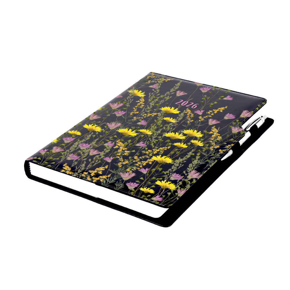 Diár DESIGN denný A4 2026 poľský - čierna - lúka