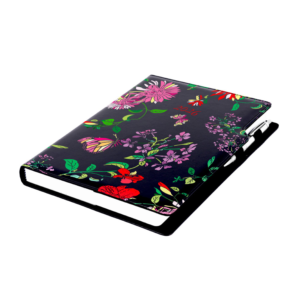 Diár DESIGN denný A4 2026 poľský - čierny - kvety