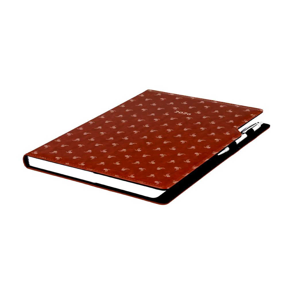 Diár DESIGN denný A4 2026 poľský - hnedá - biely kvet