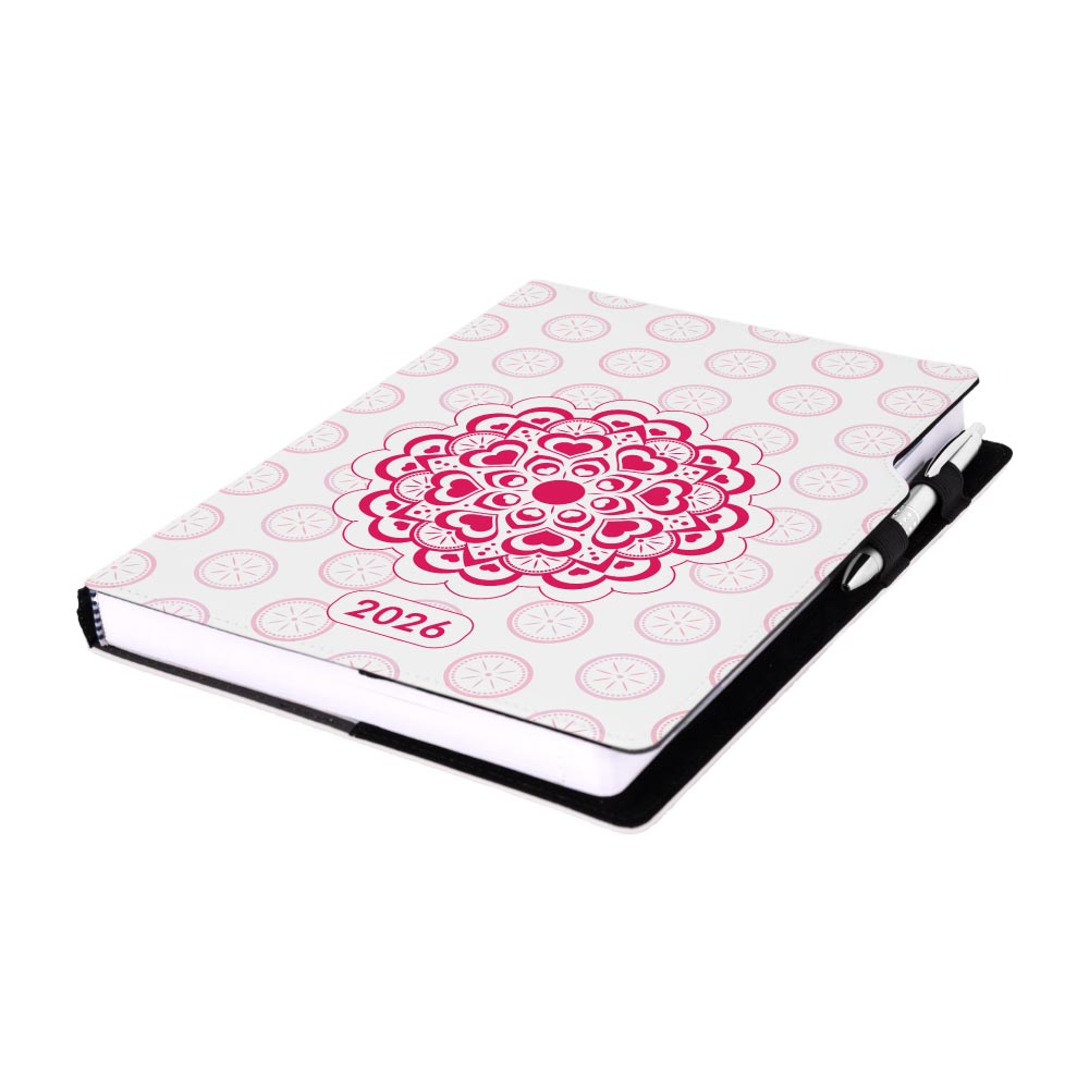Diár DESIGN denný A4 2026 poľský - Mandala červený