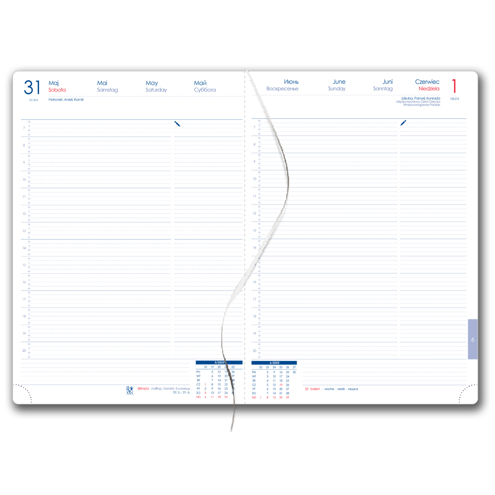 Diár obsahuje: okrúhle odtrhávcie rožky, bielu záložku a pero