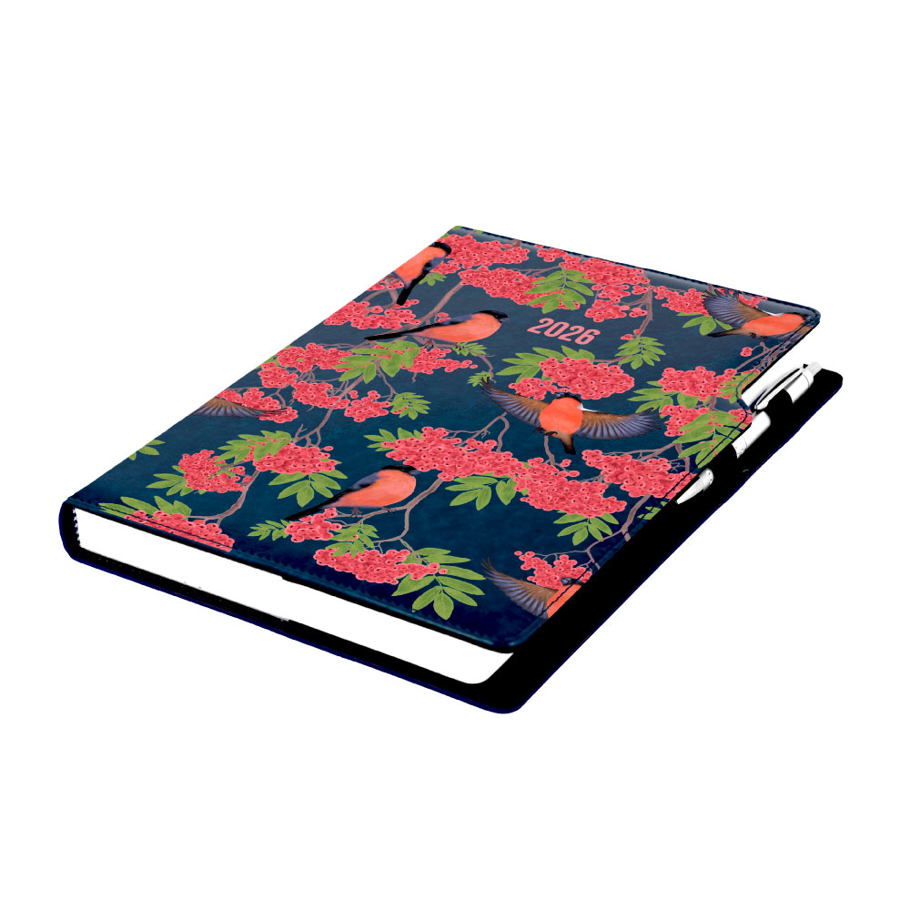 Diár obsahuje: okrúhle odtrhávcie rožky, bielu záložku a pero