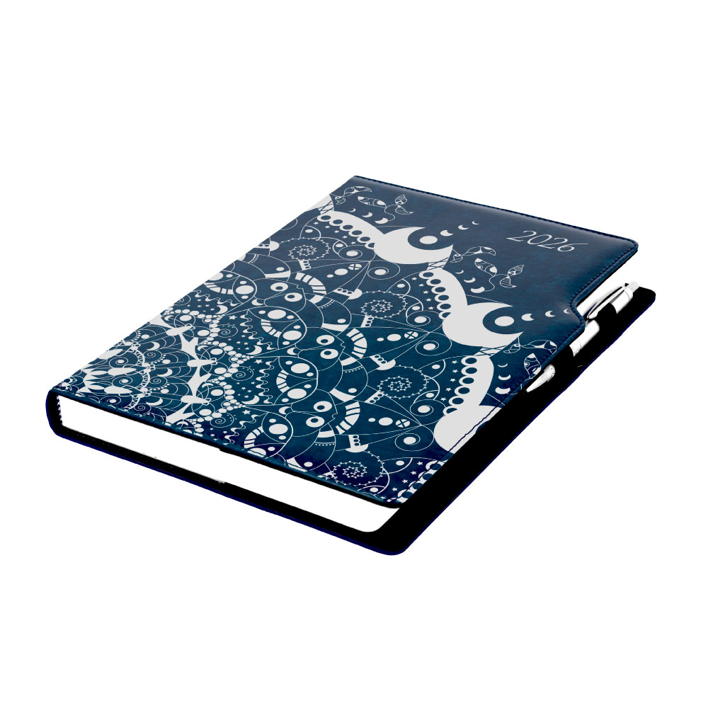 Diár DESIGN denný A4 2026 poľský - modrý - ornament