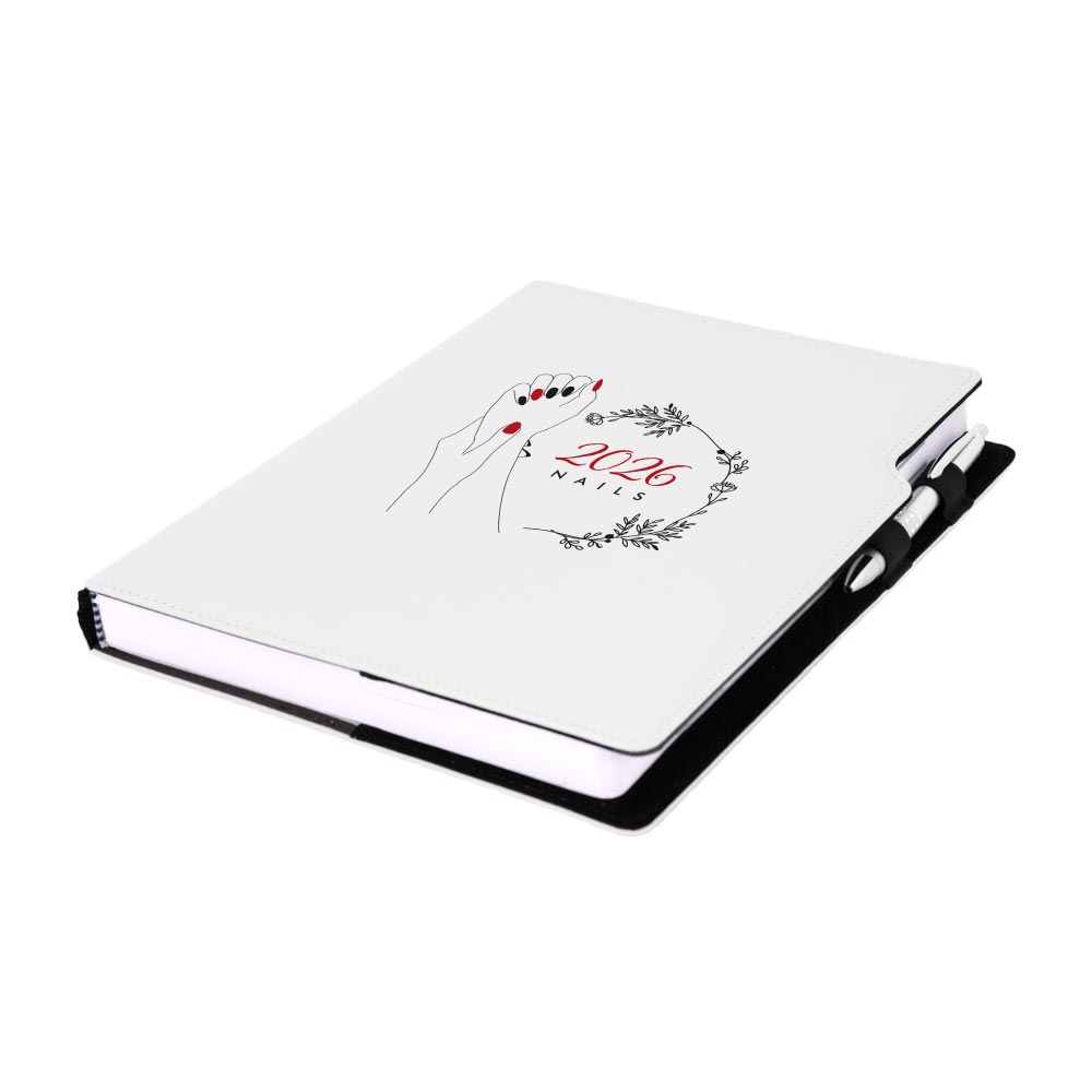 Diár obsahuje: okrúhle odtrhávcie rožky, bielu záložku a pero
