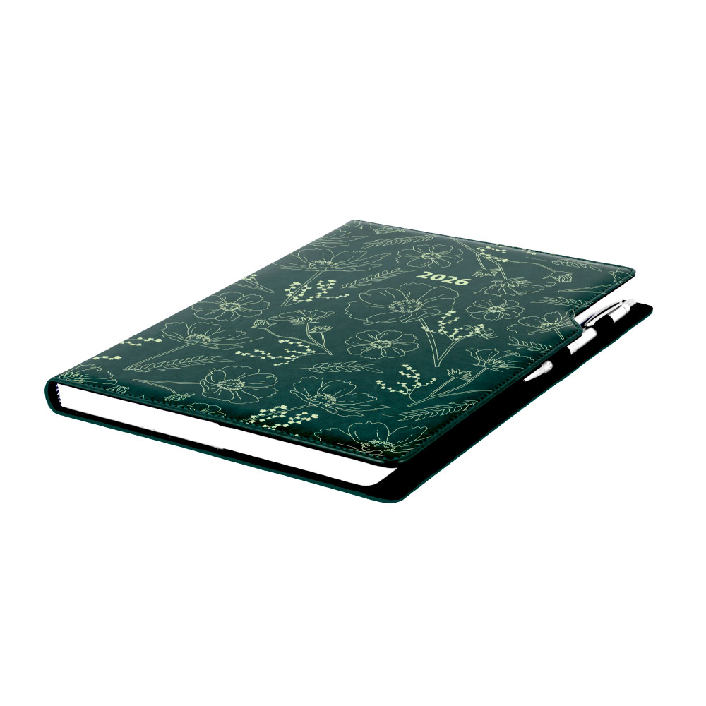 Diár DESIGN denný A4 2026 poľský - zelená - kvety