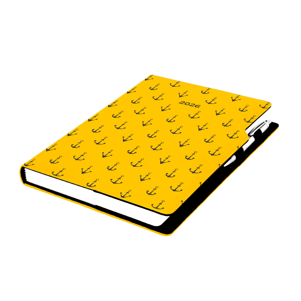 Diár DESIGN denný A4 2026 poľský - žltá - námorník - kotvy