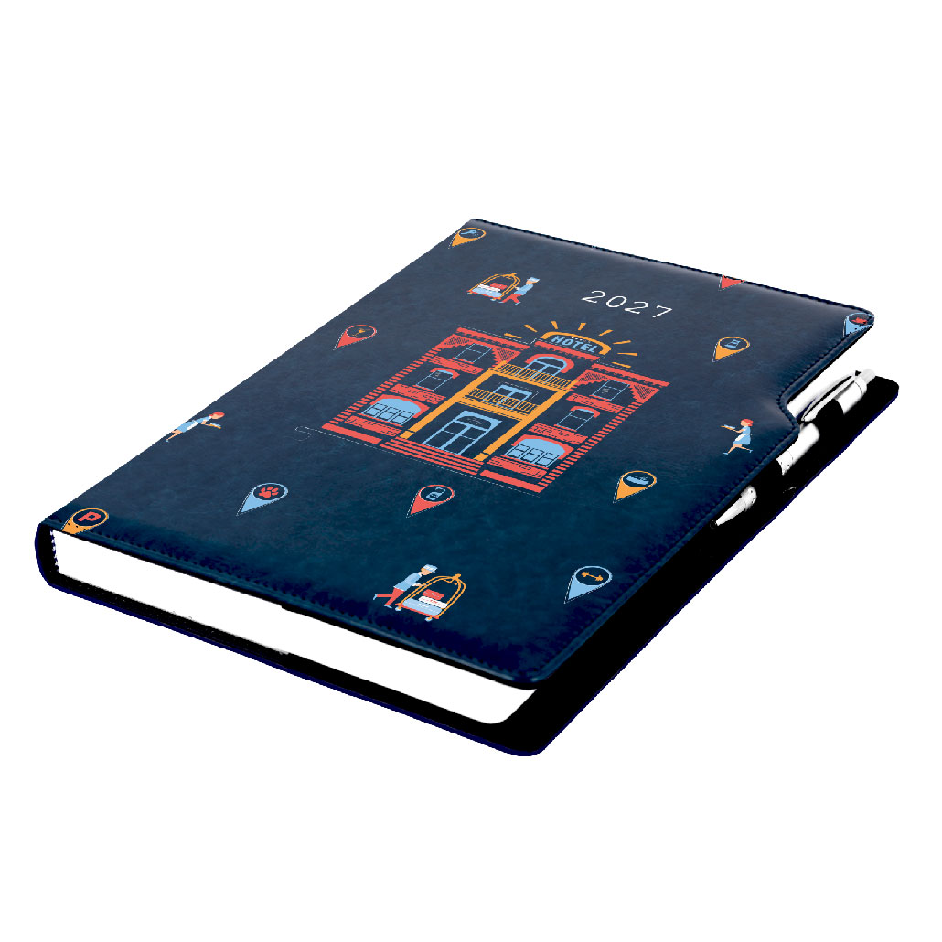 Diár DESIGN denný A4 2027 český - modrá - Hotel